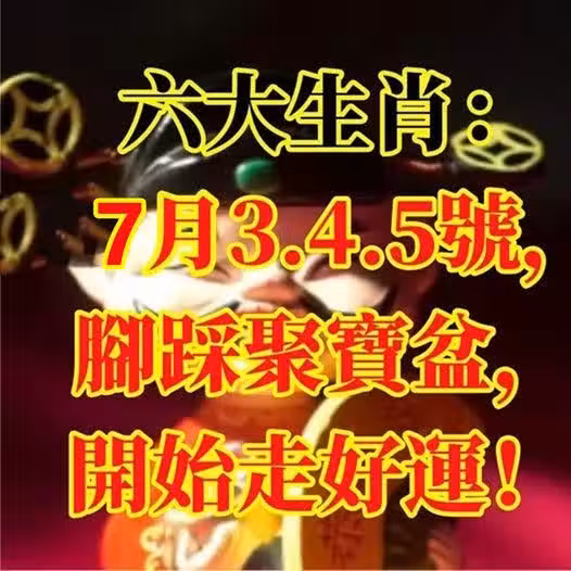 7月3.4.5號開始,腳踩聚寶盆的6生肖,開始走好運 !