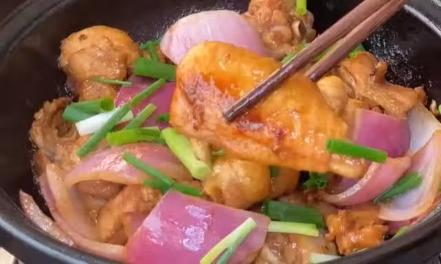 洋蔥和雞肉搭配成一道菜,美食界的新大陸,配上冰鎮可樂,太香了。