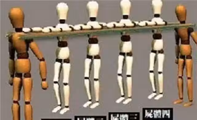 所謂「二桿」其實就是兩條大的竹竿,其作用是用來固定屍體的手臂,從手臂下方穿過,方便在前面領頭的趕屍匠把屍體抬起。