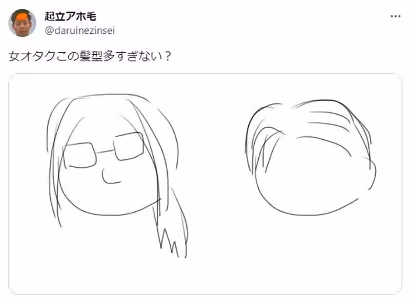 這位暱稱「起立アホ毛」的日本X網友,最近舉出了兩種他認為常見的宅女髮型,隨即收到超過4萬個讚的熱烈反響!