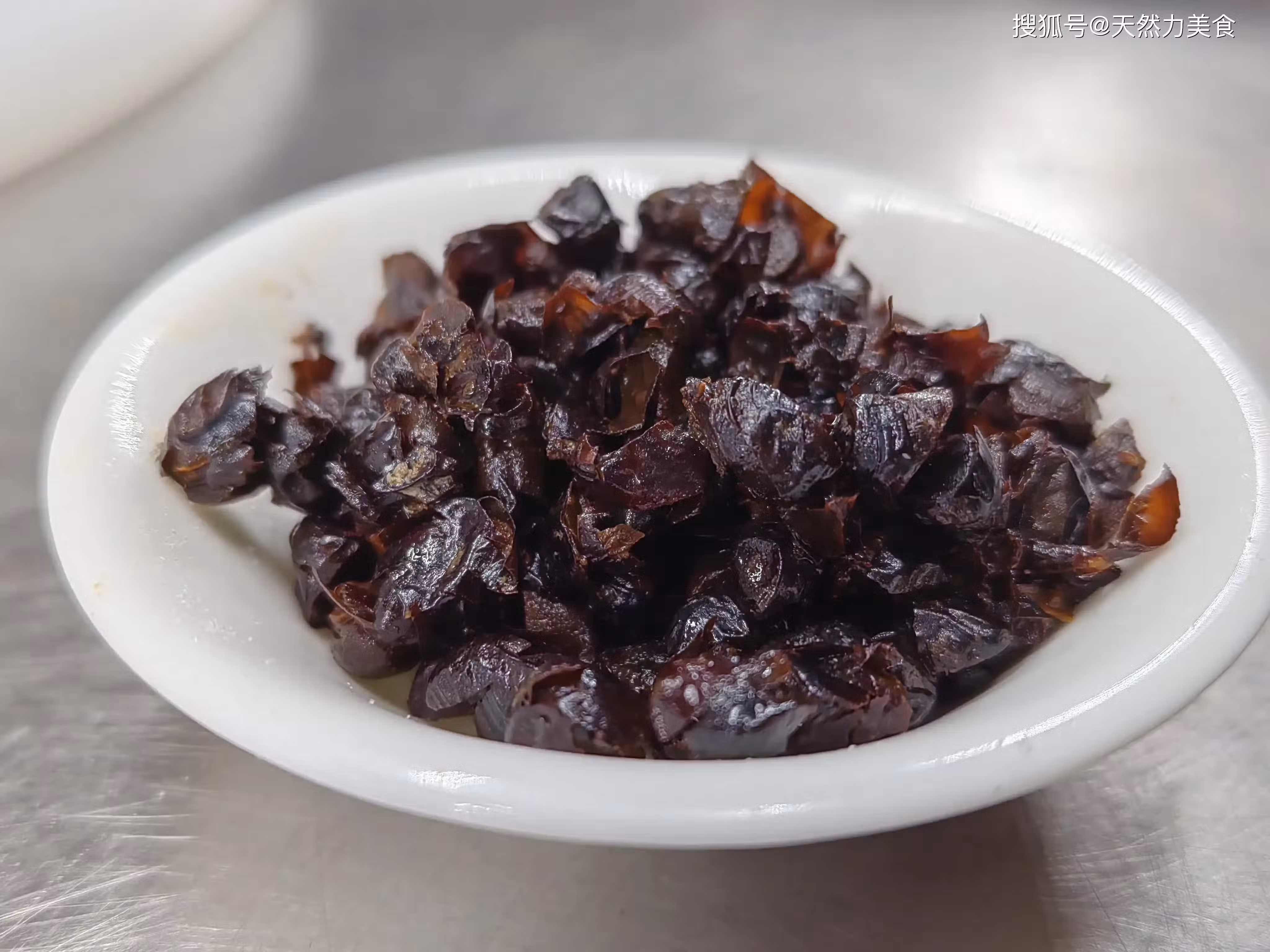 11、接下來我們就要來炒一個簡易的豆豉醬,熱鍋加30克食用油,油熱後改小火,把豆豉倒入鍋內炒出香味,大概有20秒豆豉的香味就能出來。把蒜末、薑末和蔥白一起倒入鍋內炒出香味,這個過程大概有15秒香味就能出來。