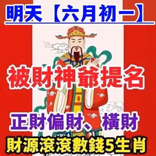 【六月初一】被財神爺提名,正財偏財、橫財,財源滾滾數錢