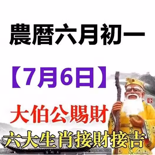 農暦六月初一(7月6日)大伯公賜財,六大生肖快來接財接吉