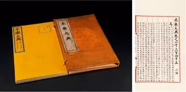 《永樂大典》是大明永樂年間由皇帝朱棣先後命解縉和姚廣孝主持編纂的一部集中國古代典籍於大成的超級類書,初名《文獻大成》,後永樂帝親自撰寫序言並賜名《永樂大典》。這是中國第一部百科全書式的文獻合集,全書22,877卷(目錄占60卷),11095冊,約3.7億字,彙集了古今圖書七八千種,顯示了中國古代科學文化的光輝成就。