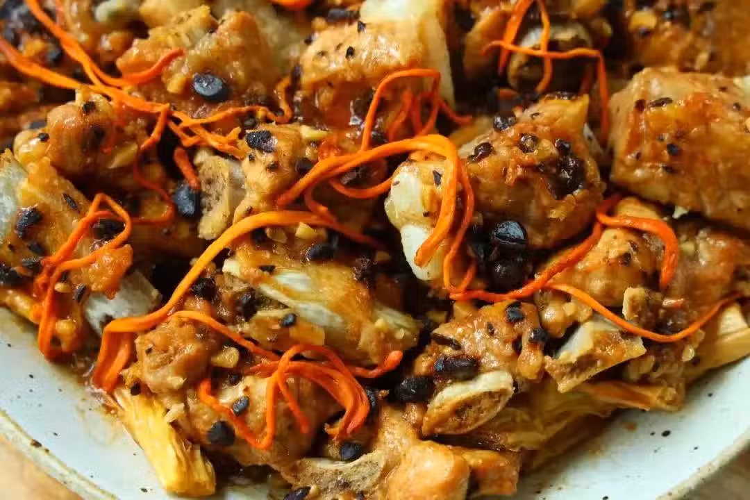 接下來,為排骨量身打造腌料:生抽兩勺,為排骨增添鮮美的底味;老抽一勺,上色增香,讓排骨色澤誘人;蚝油一勺,提升整體風味,使其更加醇厚;半勺鹽,恰到好處地調出排骨的本味;澱粉一勺,鎖住肉汁,讓排骨口感更加滑嫩;再添入一小勺白鬍椒粉與姜粉,去腥增香,最後加入兩勺特製大料水,讓排骨充分吸收香料的精華。將這些調料與排骨充分拌勻,讓每一塊排骨都裹上濃郁的腌料。