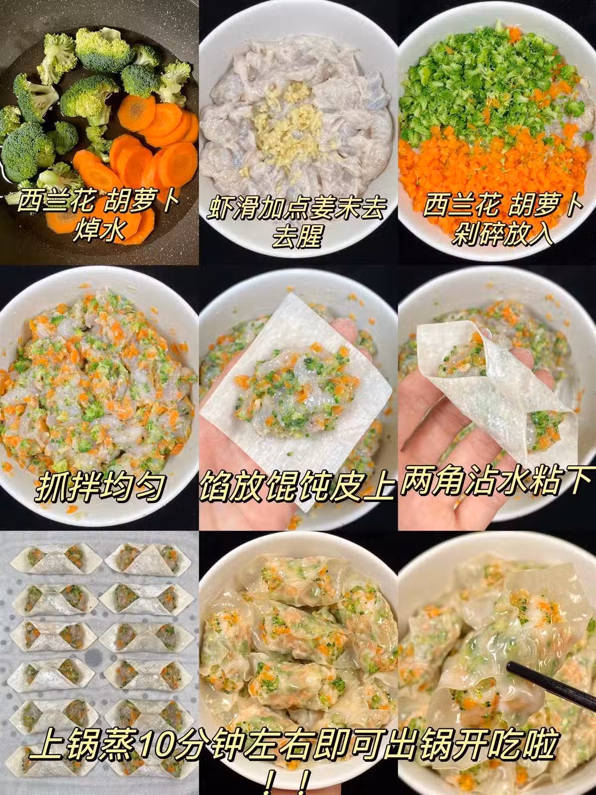 皮薄餡大,蝦滑Q彈鮮美,帶著胡蘿蔔 西蘭花的顆粒感,口感賊豐富!好吃到舔手指,一上桌就光碟,全家人吃完都讚不絕口