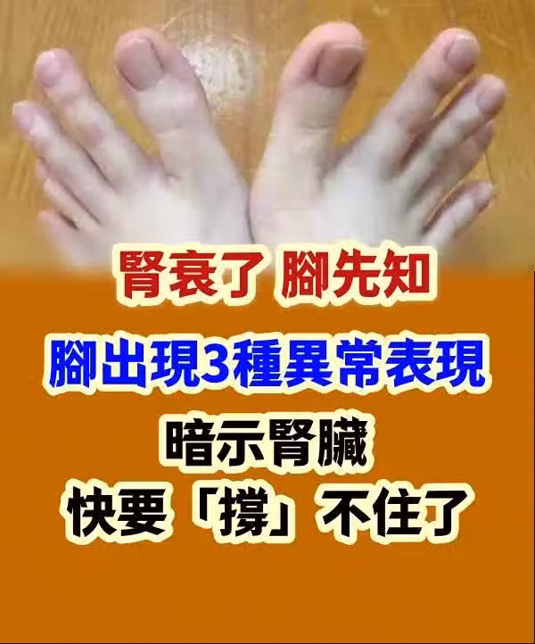 腎衰了,腳先知!腳出現3種異常表現,暗示腎臟快要「撐」不住了~