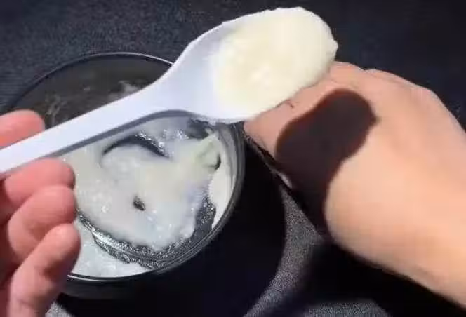 接著繼續攪拌,最後把它攪拌成這種的糊狀,用勺子提起來不容易掉落,像這個樣子就可以了。那麼我們凡士泥還有白醋這樣搭配起來,攪拌均勻後到底有什麼用處呢?