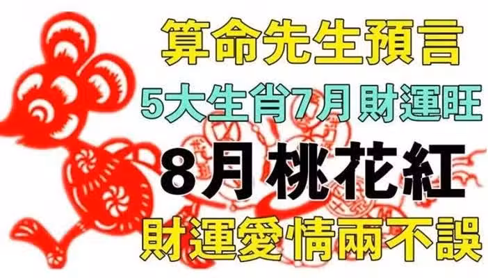 五大生肖:7月份財運旺,8月桃花紅,財運愛情兩不誤