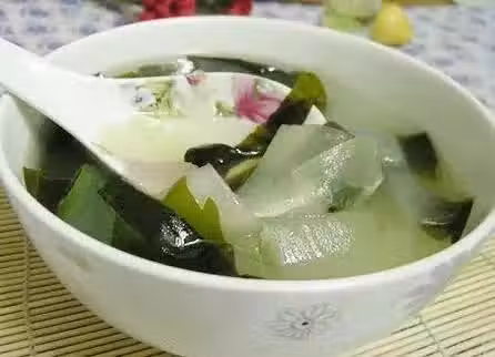 功效:冬瓜有良好的清熱解暑的功效,冬瓜性寒,能清降胃火,促使體內澱粉和糖分轉換為熱能,而不變成脂肪,而海帶里含有的大量碘能促進雌性激素的分泌,也是美容的原動力,西瓜皮也具有非常好的敗火去熱神奇功效。