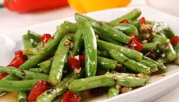 四季豆乾辣椒、蒜頭多一些、醬油少許、糖、鹽、雞精
