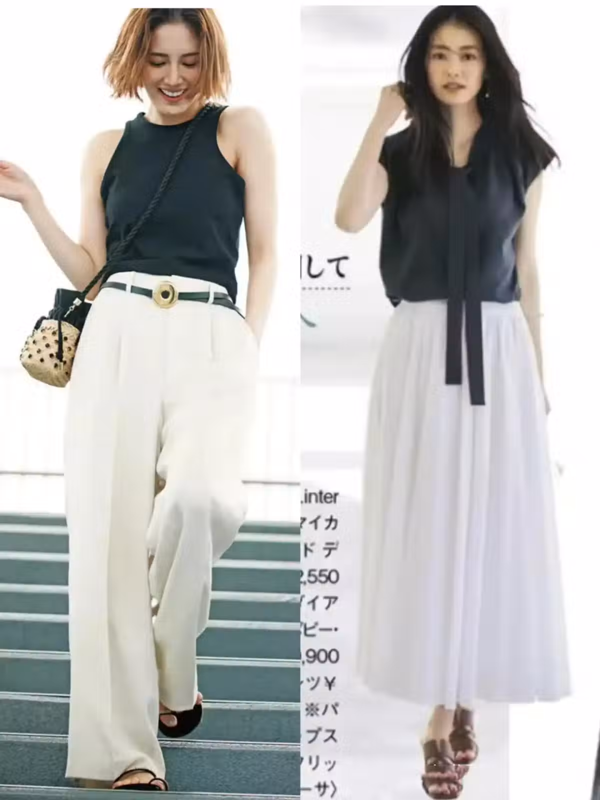 如果服裝覆蓋性太強,整體包裹性太嚴實的話,很難表現出視覺上的呼吸感,也便顯得老氣了些。所以想要無齡感穿搭,一定要運用適當的露膚,保持一定的呼吸感。
