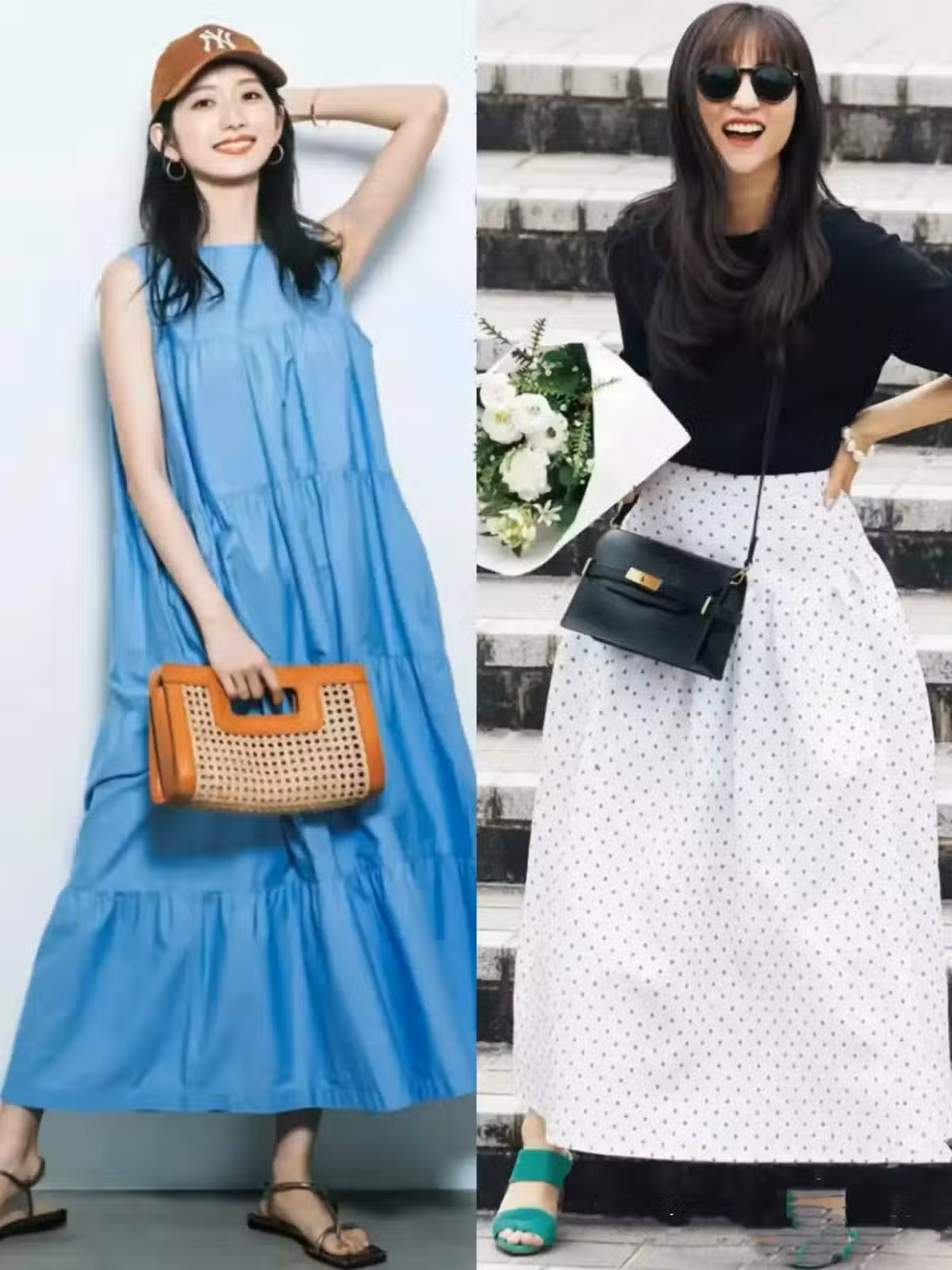 無齡感穿搭,色彩上也可以更加清爽大氣,避免花花綠綠、選擇更清爽高級的黑白配。尤其是黑色T恤+波點半身裙,既顯瘦又有包容性。