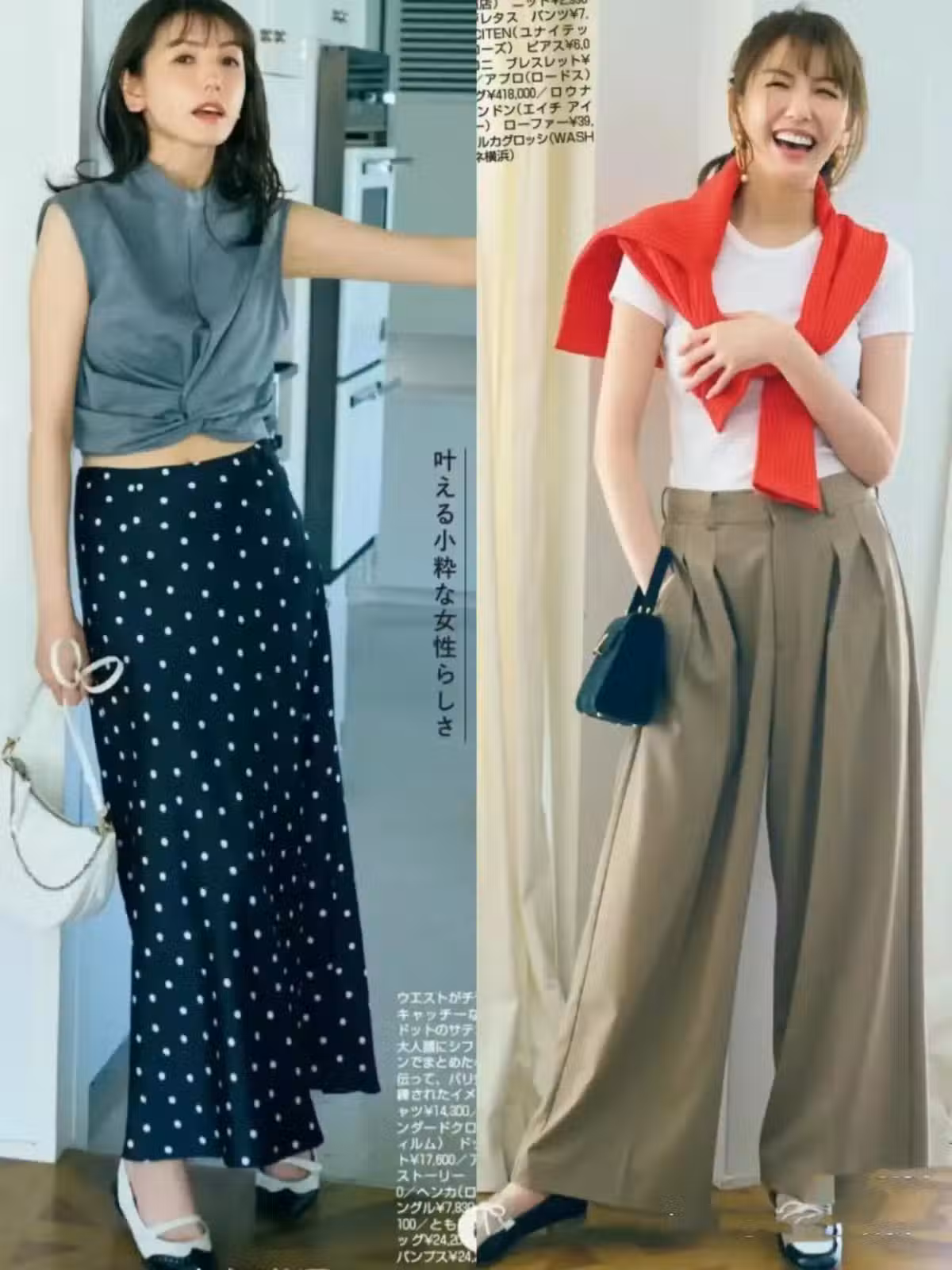 如果用露臍上衣配高腰H型半身裙的話,一定要沒有小肚腩才行。小肚腩明顯的話,儘量配裙擺寬鬆的半身傘裙。