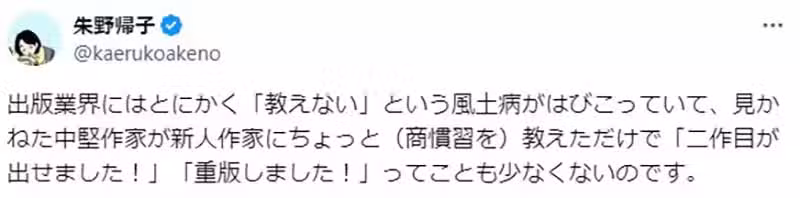 日本知名小說家朱野歸子(朱野帰子),最近在X發文批評起了日本出版業界的風氣,引髮網友熱烈反響……