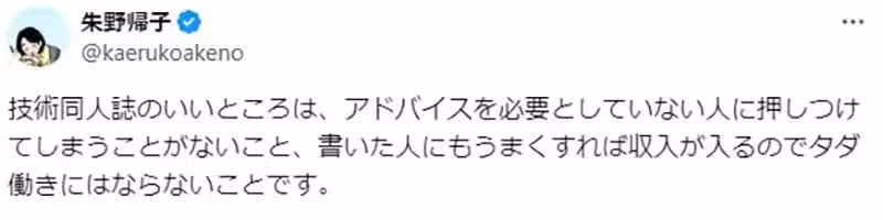 《日本小說家朱野歸子》呼籲同行藉由同人誌分享出書經驗,因為出版業都不喜歡教新人?