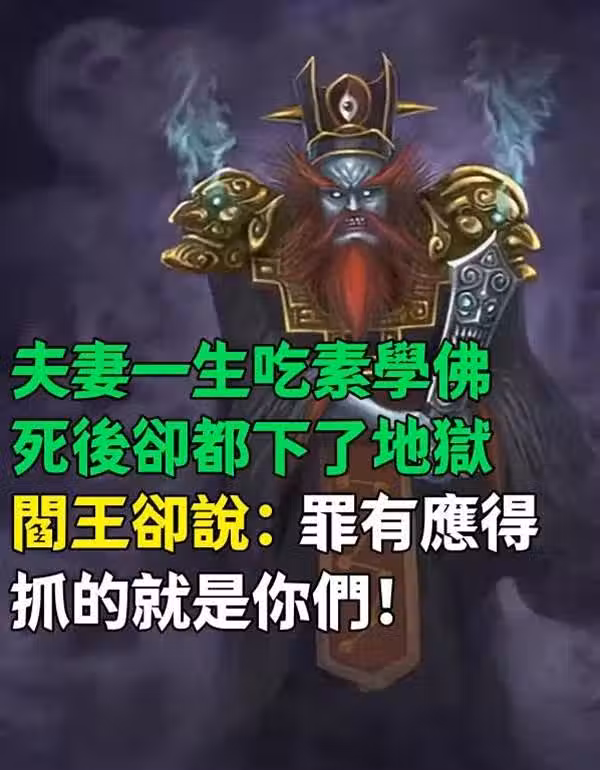 65歲夫妻一生吃素學佛,死後卻都下了地獄,閻王卻說:罪有應得,抓的就是你們…