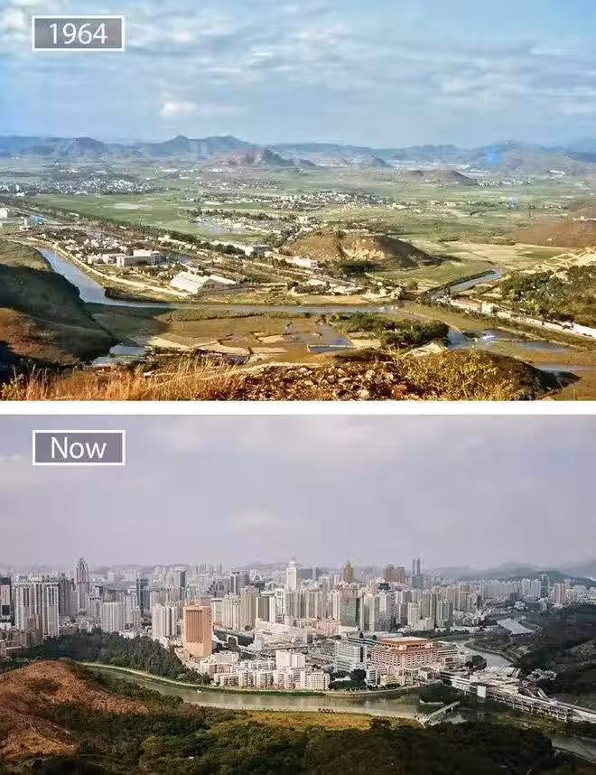1964年的深圳與現在的深圳對比,作為改革開放的窗口,深圳用了短短數十年的時間發展成了現代大都市,創造了舉世矚目的「深圳速度」。