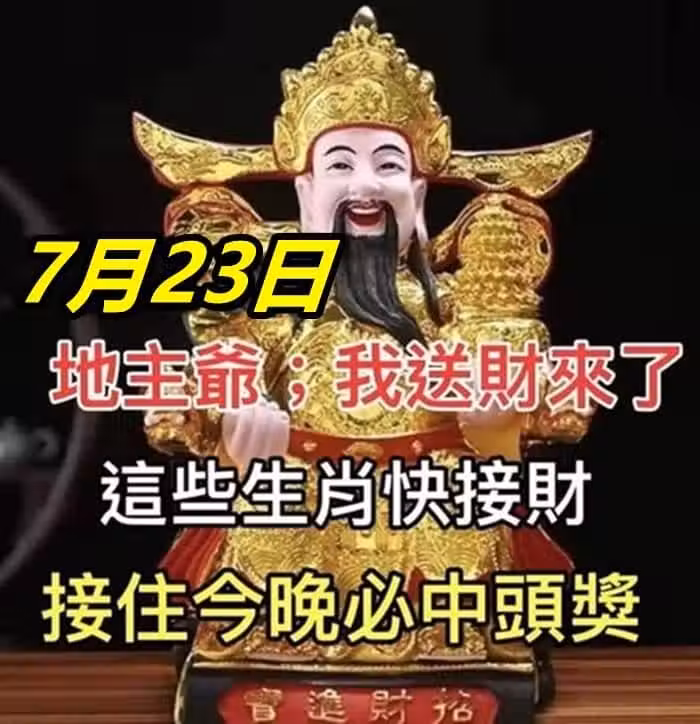 今天7月23日,地主爺說:我送橫財來了!這些生肖今晚必中頭獎