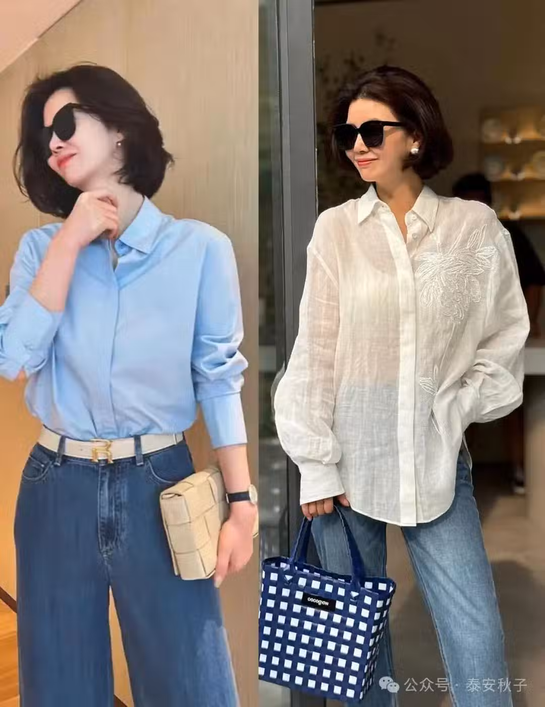 不妨試試知性、簡約的襯衫款式吧。大家穿襯衫的時候,記得選擇比較輕薄的材質,再以刺繡、開叉等元素加持,平日生活、通勤中穿一定不會出錯。