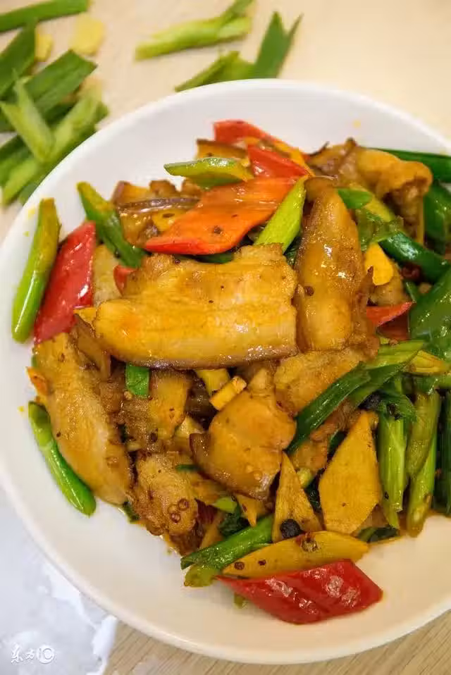 8.最後放青蒜,炒幾下稍軟就可以出鍋了。