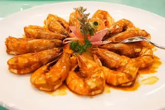 2. 鍋中少許油燒熱放入大蝦煸炒出蝦頭紅油後加味達美味極鮮30克、胡椒粉1 克、 糖3 克和適量開水大火燒開後用少量澱粉勾芡即可。
