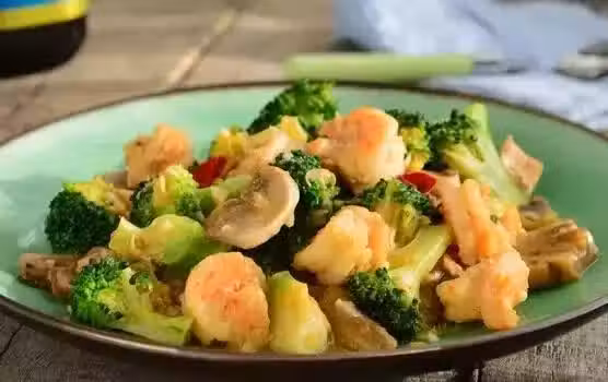 配料:西蘭花、蘑菇、蝦仁、鹽、雞精、油。