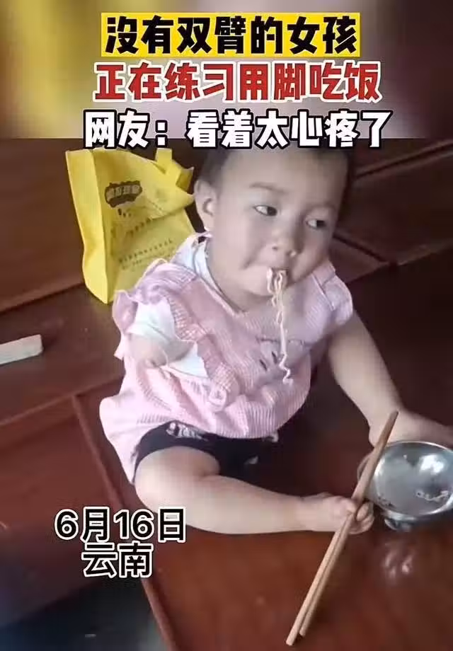 心酸!雲南,失去雙臂的小女孩,努力練慣用腳吃飯,她的堅強令人淚目!父母:不是我狠心不喂她,想從小鍛鍊她自食其力的能力,因為我陪伴不了她一生!網友:孩子長大了,她問爸爸媽媽,「我怎麼和別的孩子不一樣?
