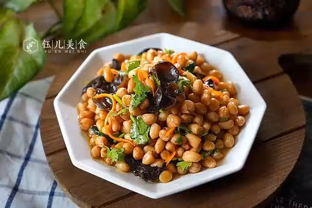 食材:花生米500克、黑木耳15克、胡蘿蔔絲10克、蒜碎4克、香菜一棵、生抽半小勺、香醋一小勺、白糖半小勺、鹽一小勺、芝麻油半小勺