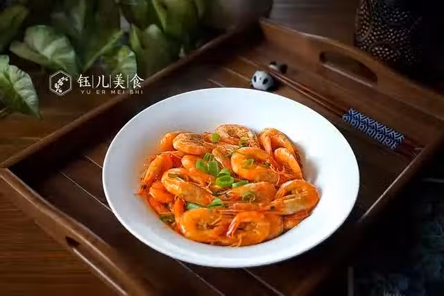 食材:基圍蝦500克、生薑少許、蒜碎少許、茄汁2小勺、鹽少許、蔥花少許