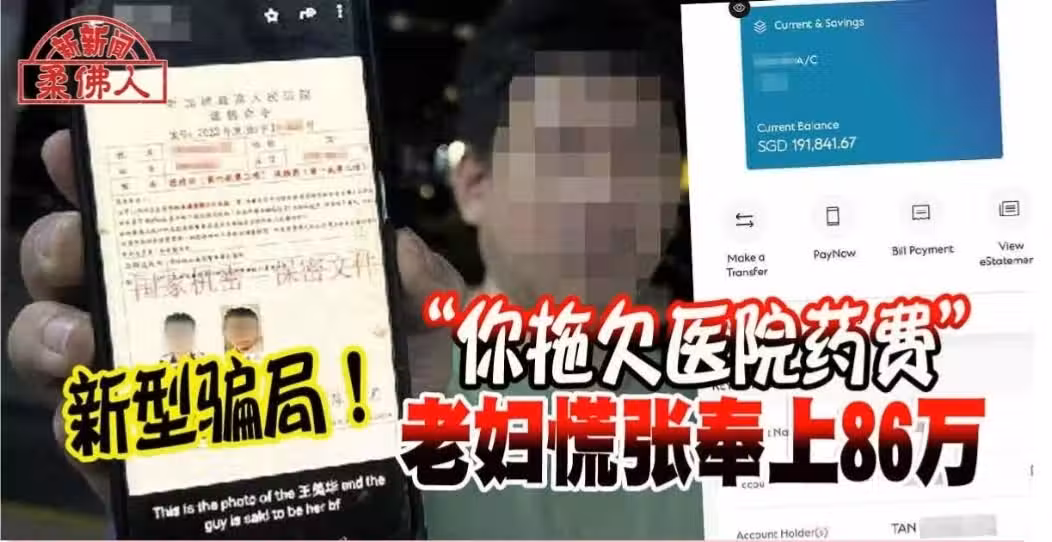 獅城焦點, 新型騙局!「你拖欠醫院藥費」 老婦慌張奉上86萬