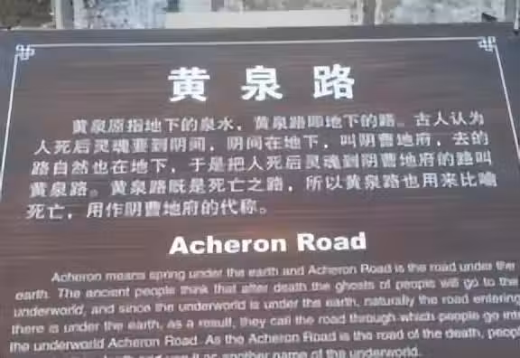 何為「黃泉路」? 傳說「黃泉路」一詞源自唐代詩人白居易《長恨歌》:「渭水自縈秦塞曲,黃泉無客路邊竹。」詩中提到了「黃泉路邊竹」,這裡的「黃泉路」指的是與地下通道相連的陰間之路。