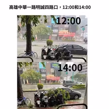 網絡粉專「貓與邪佞的手指」統整出熱心社友提供的高雄各地區照片比較,可見部分區域的積水其實在短時間內已陸續退去。
