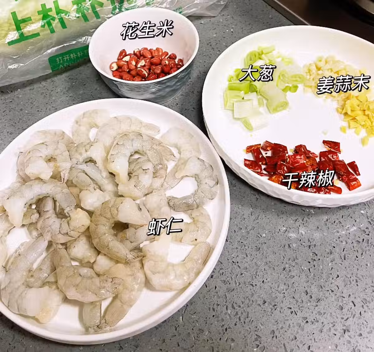 2、腌制蝦仁:將蝦仁洗凈,加入少許鹽和胡椒粉,再撒上一些澱粉,抓勻後腌制10分鐘,讓蝦仁更加鮮嫩。