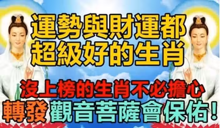 運勢與財運都很好的生肖,轉發觀音菩薩會保佑