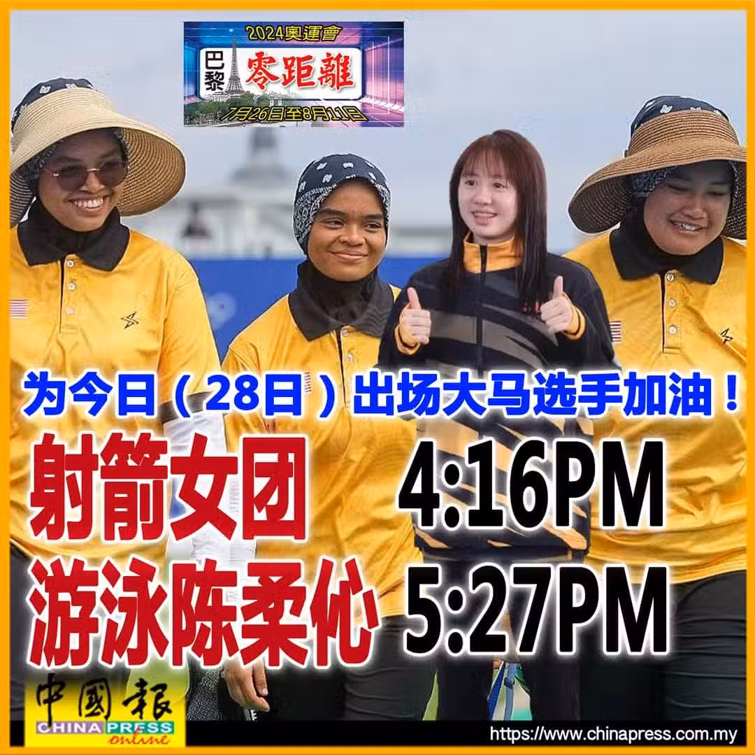 大馬運動員在明日(28日)繼續出戰,其中最為關注的大馬羽球男單一哥李梓嘉也將迎來本屆奧運首秀,落在G組的他將迎來斯里蘭卡男將維仁,如無意外可以輕打響首炮。