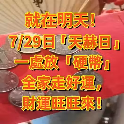 就在明天!7/29日「天赫日」一處放「硬幣」全家走好運,財運旺旺來!