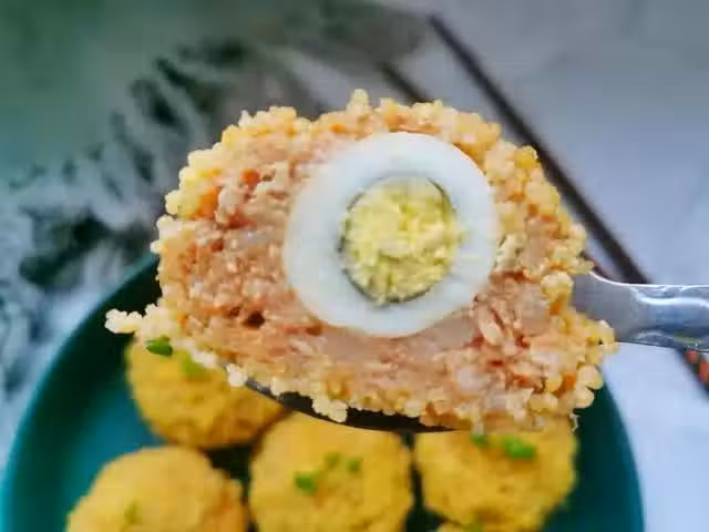 1、小米提前用清水浸泡兩小時,這樣蒸出來的丸子更軟糯,鵪鶉蛋煮熟剝去殼兒,可以多準備一些。