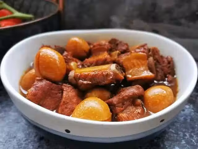 8、燉至排骨軟爛、鵪鶉蛋入味,加入適量鹽調味,改大火收汁。
