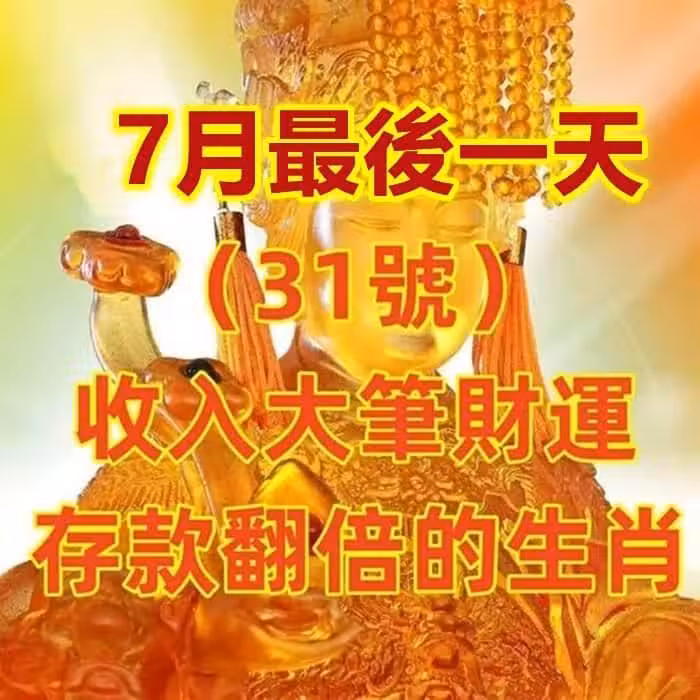 7月最後一天(31號)收入大筆財運,存款翻倍的生肖 !