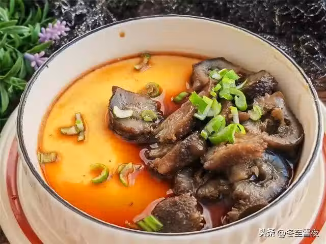 【海參蒸蛋羹】所需材料:水發海參1根、雞蛋2個、香油半湯匙、鹽少許、蒸魚豉油1湯匙、