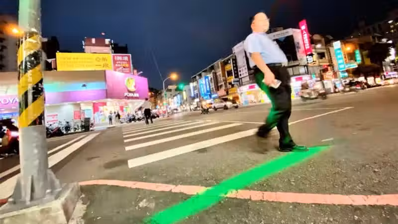 台中斑馬線新設投影紅綠燈,地板光源網友笑翻:過馬路要刷條碼