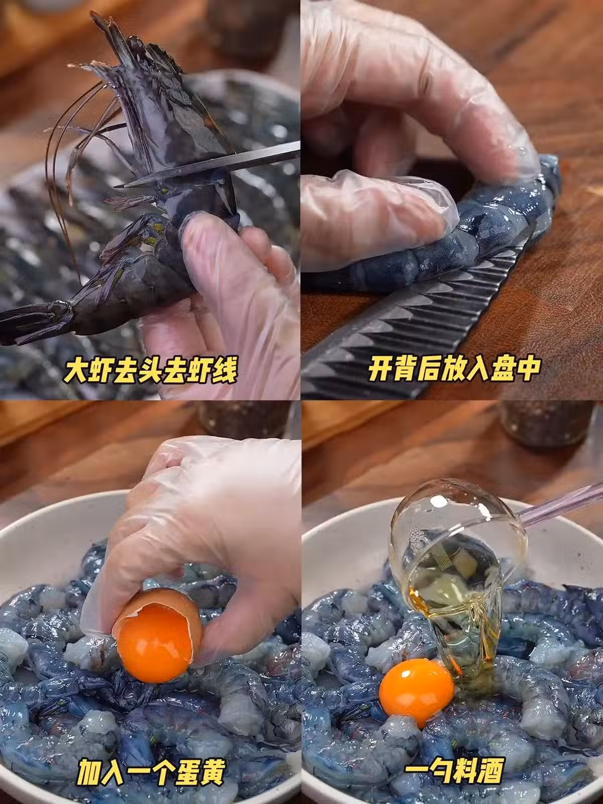 材料:大蝦 菠蘿 雞蛋 芥末醬