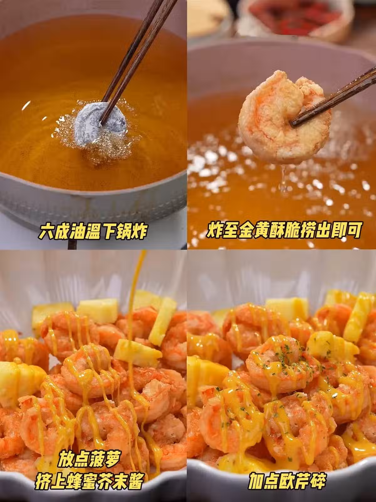材料:大蝦 菠蘿 雞蛋 芥末醬 做法如圖,超級簡單