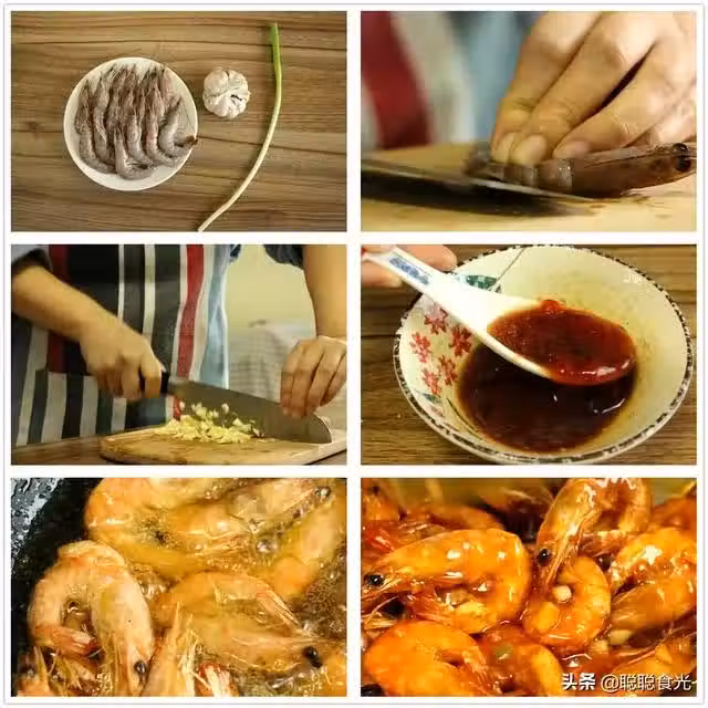 6、炒鍋留少量油,放入蔥蒜炒香,倒入之前調好的醬汁,炒到濃稠,倒入炸好的大蝦,翻炒一下,讓大蝦均勻地裹上醬汁就可以了。出鍋裝盤撒上蔥花或者芝麻。