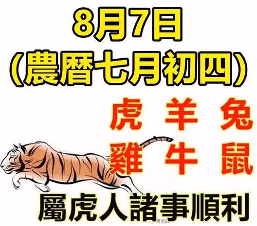 小運播報:2024年8月7日,星期三,農曆七月初四,法定工作日。