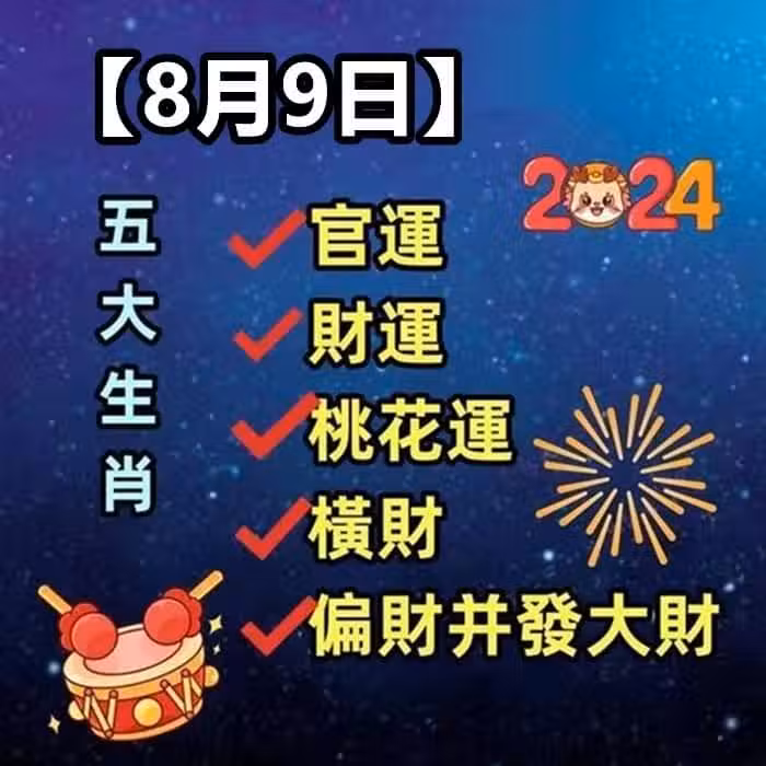 8月9日:官運 財運 桃花運 橫財 偏財並發大財的5生肖