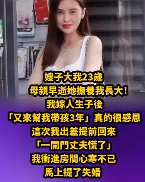 嫂子大我23歲,母親早逝她撫養我長大!我嫁人生子後「又來幫我帶孩3年」真的很感恩...這次我出差提前回來「一開門丈夫慌了」我衝進房間心寒不已,馬上提了失婚!