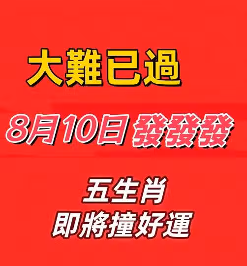 大難已過 今天8月10號開始 五生肖 即將撞好運