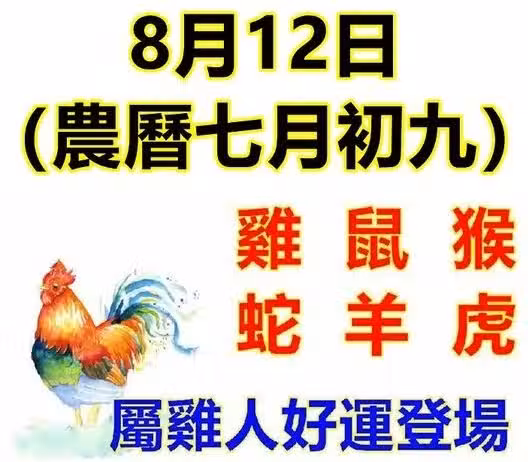 8月12日生肖運勢_雞、鼠、猴大吉